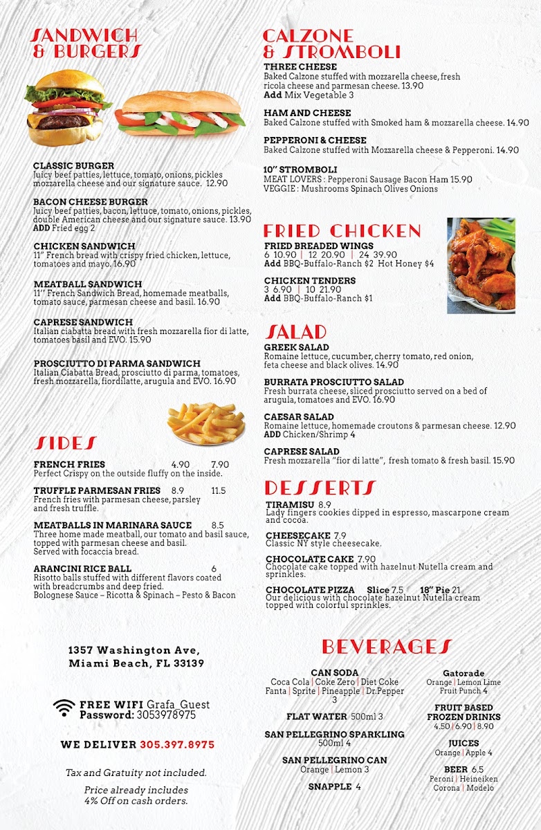 Welcome to Grafa Pizza, your new favorite spot in Miami Beach! Nestled at 1357 Washington Ave, Grafa Pizza offers a delightful menu that highlights authentic New York-style pizza, renowned for its crispy crust and rich flavors.