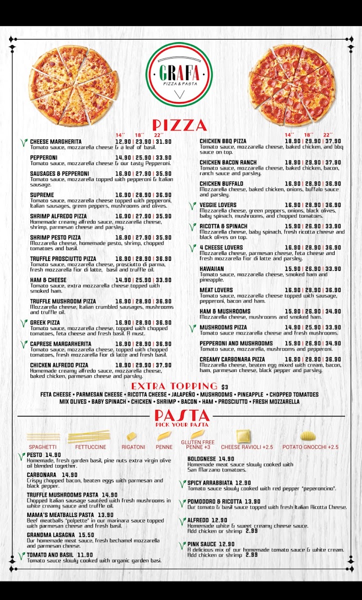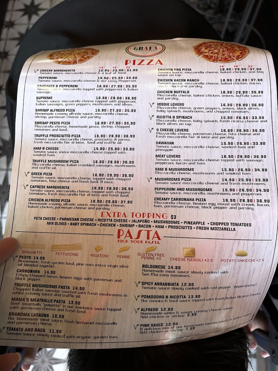 The vibrant atmosphere is perfect for families and friends, making outdoor seating a must-try. With glowing reviews from customers like Morgan and Janice, it's clear that Grafa Pizza combines delicious food with outstanding service. Whether you’re stopping in for a quick slice or savoring a full pie, each bite at Grafa Pizza promises satisfaction.